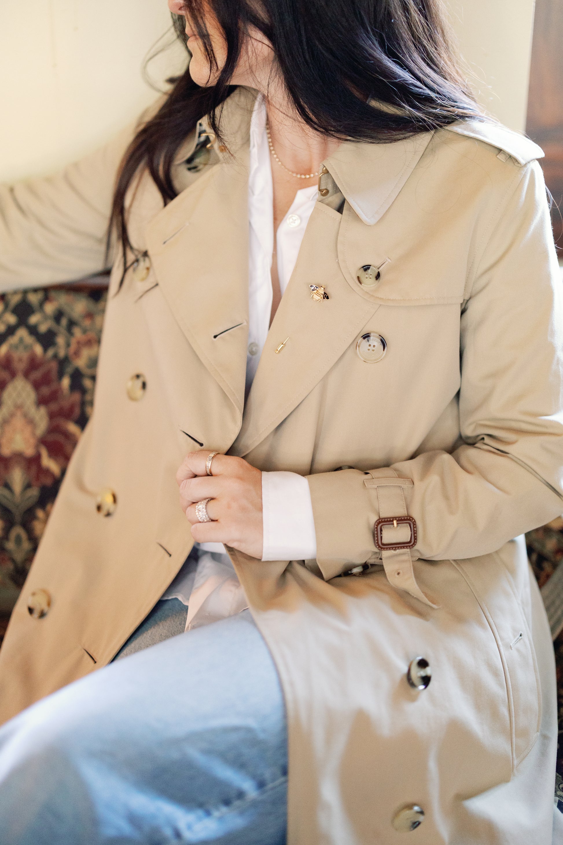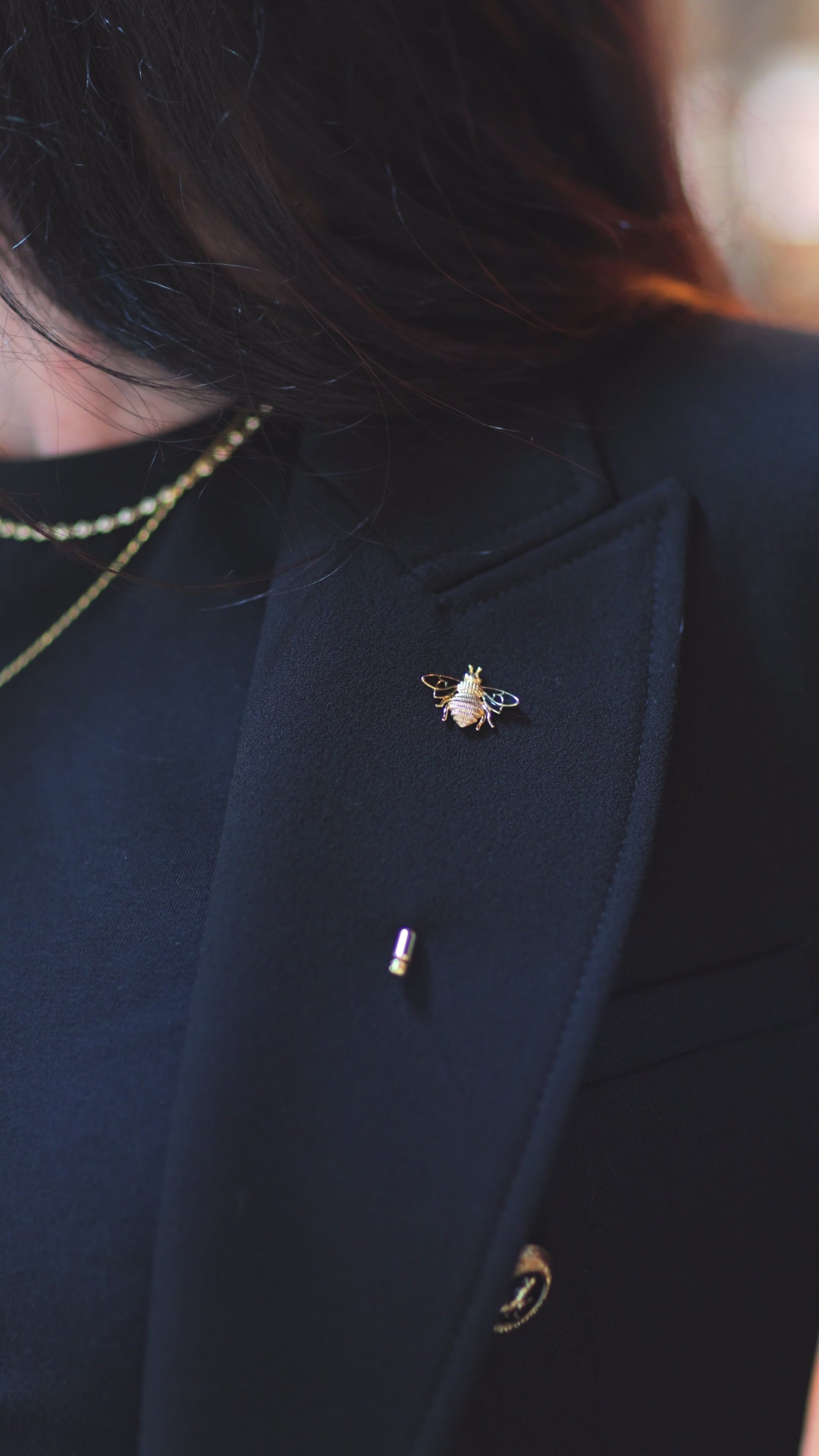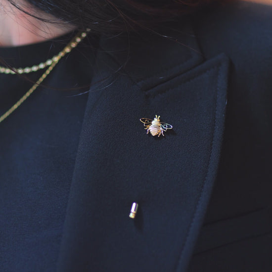 18k gold over 925 sterling silver pin featuring a beautifully detailed bee, symbolizing strength and elegance. Perfect for adding a touch of charm to jackets, scarves, or hats. A small accessory with big personality.