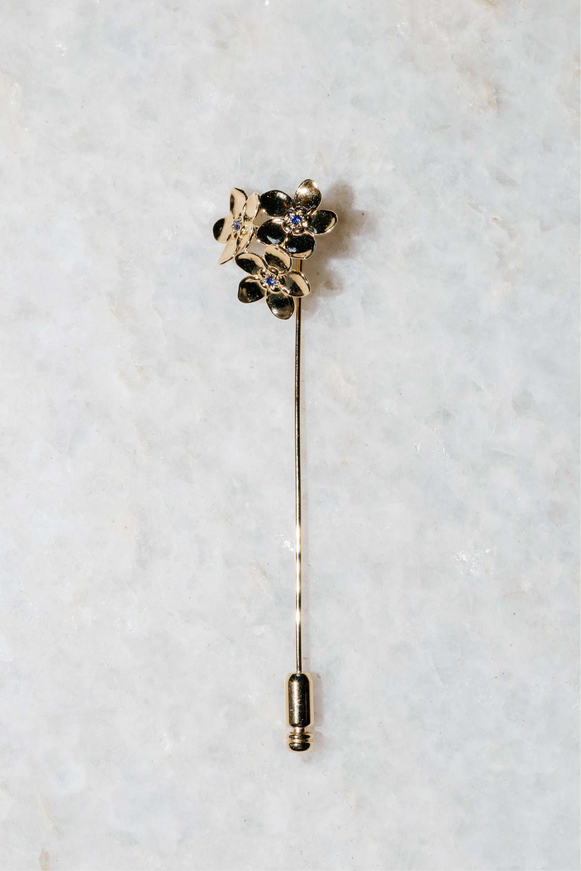 Inspired by the delicate forget-me-not flower and named in homage to our founder’s great-grandmother, Johnnie Snipes, who wore stick pins as her signature, this piece is a timeless nod to remembrance and heritage. Crafted in 18k gold over 925 sterling silver, it adds a subtle, meaningful touch to any look.