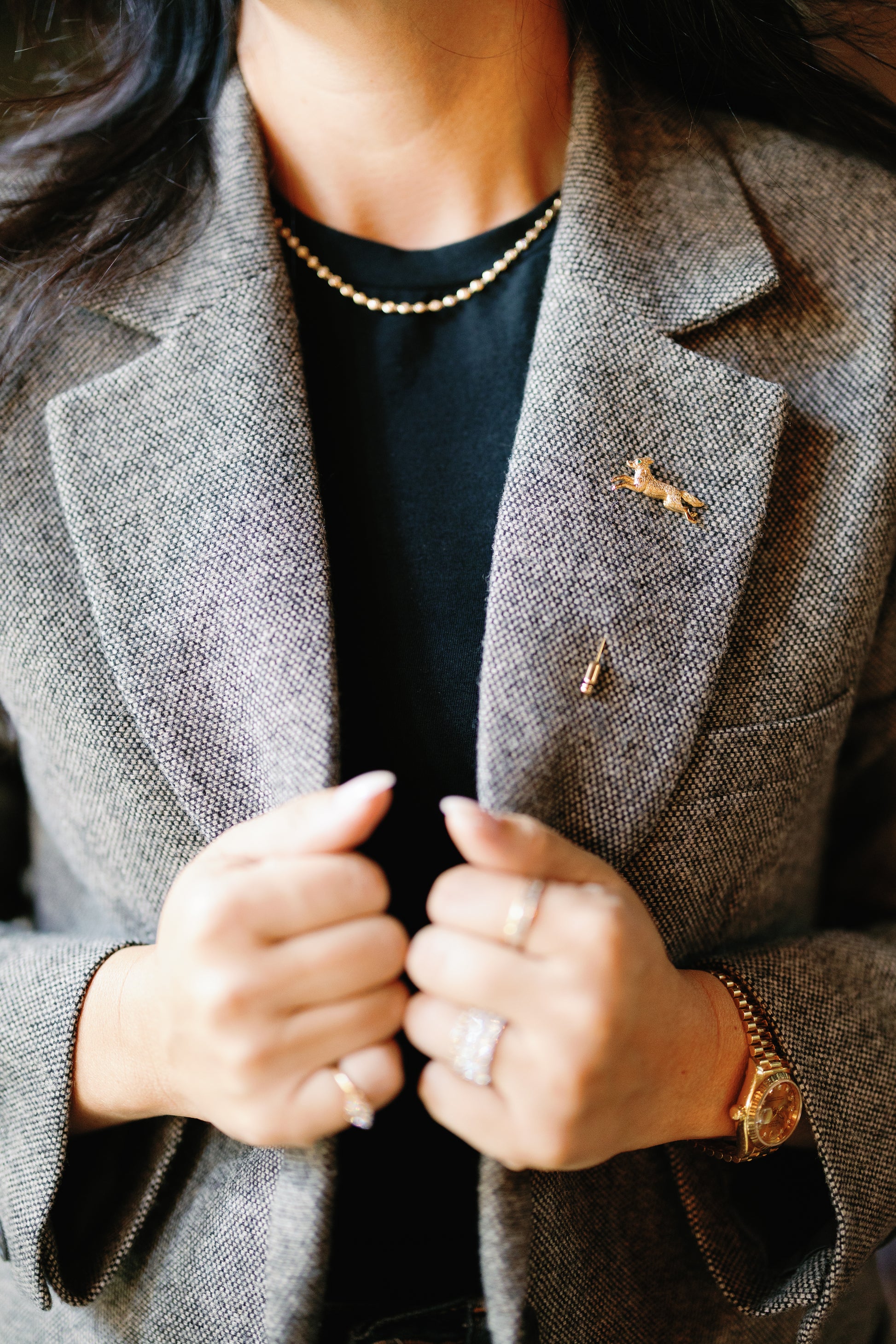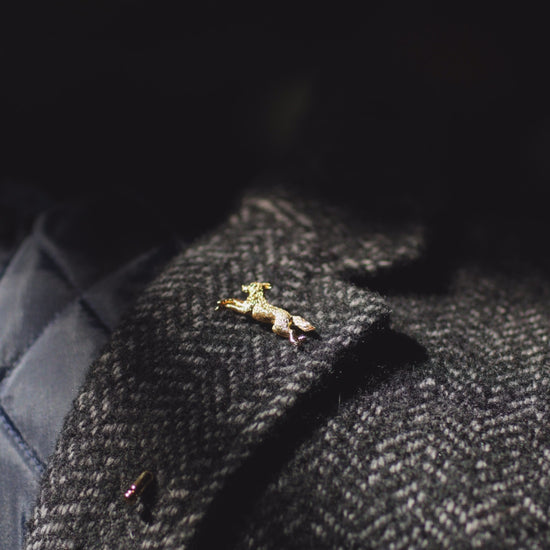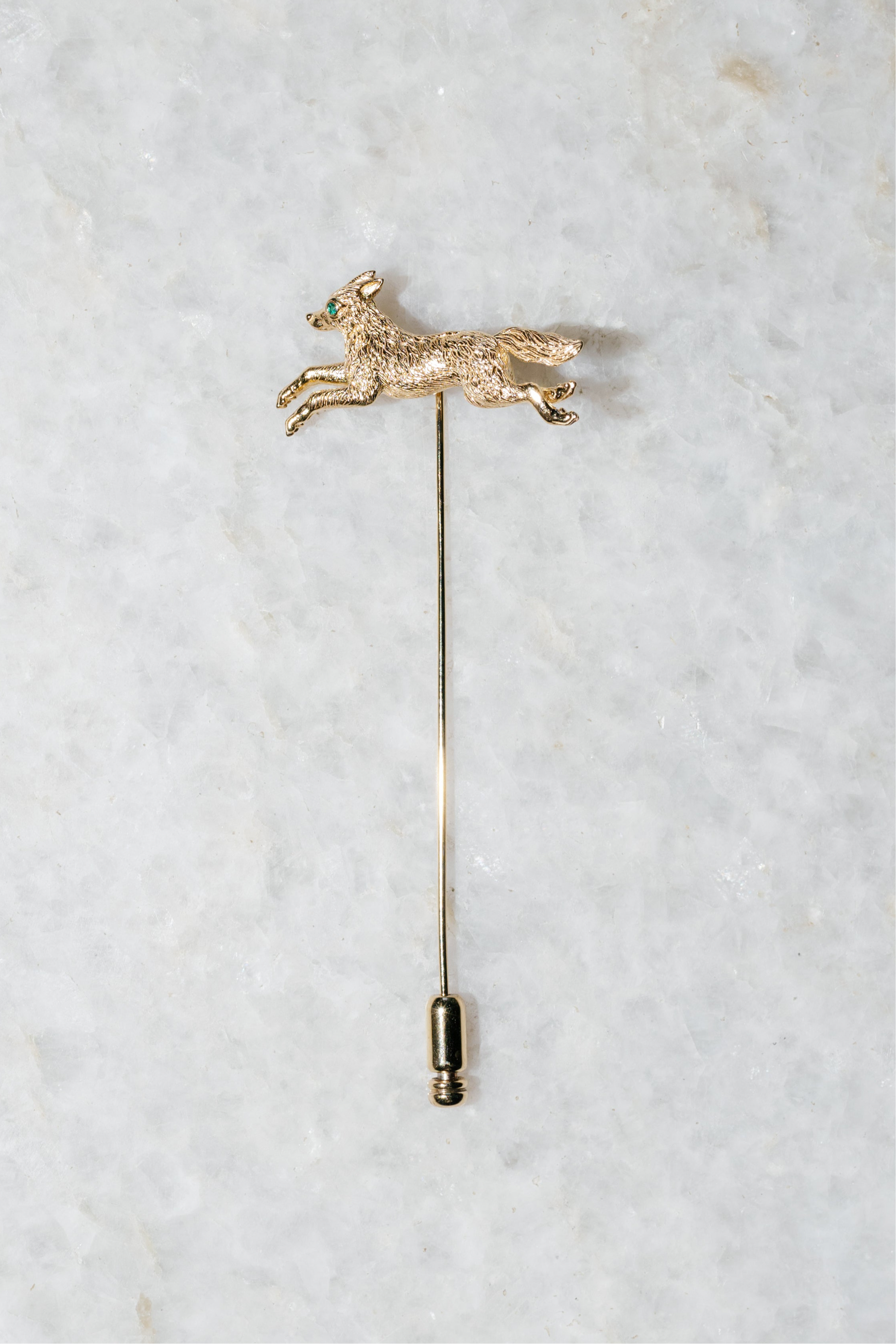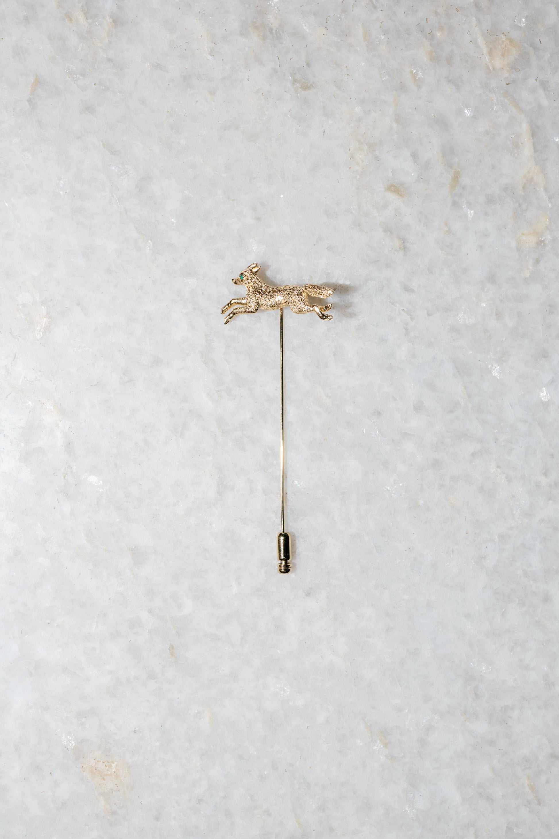 A sleek 18k gold over 925 silver pin featuring a graceful fox, perfect for adding a playful yet refined touch to any jacket, scarf, or hat. A charming detail that elevates everyday style.
