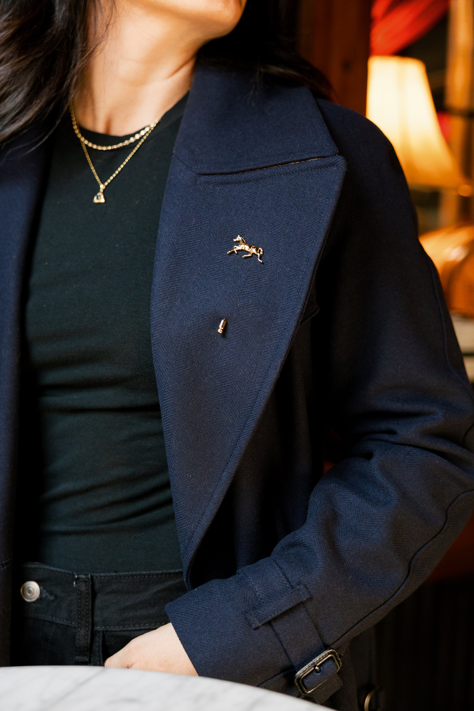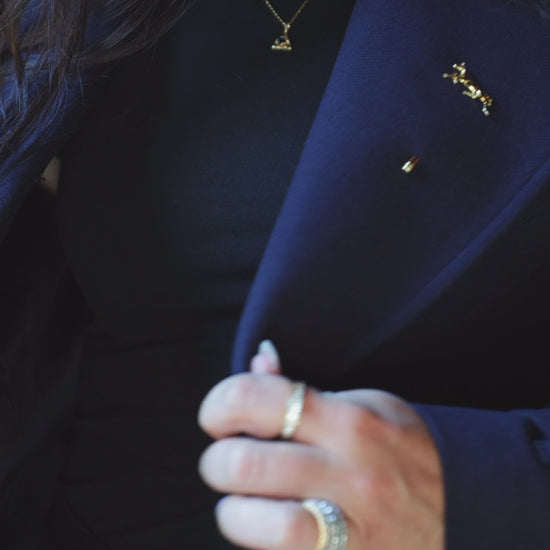 A finely detailed 18k gold over 925 sterling silver horse pin that captures strength and grace in one timeless accessory. Perfect for equestrians and style lovers alike, it adds a refined touch to jackets, scarves, or hats. Perfect for every occasion.