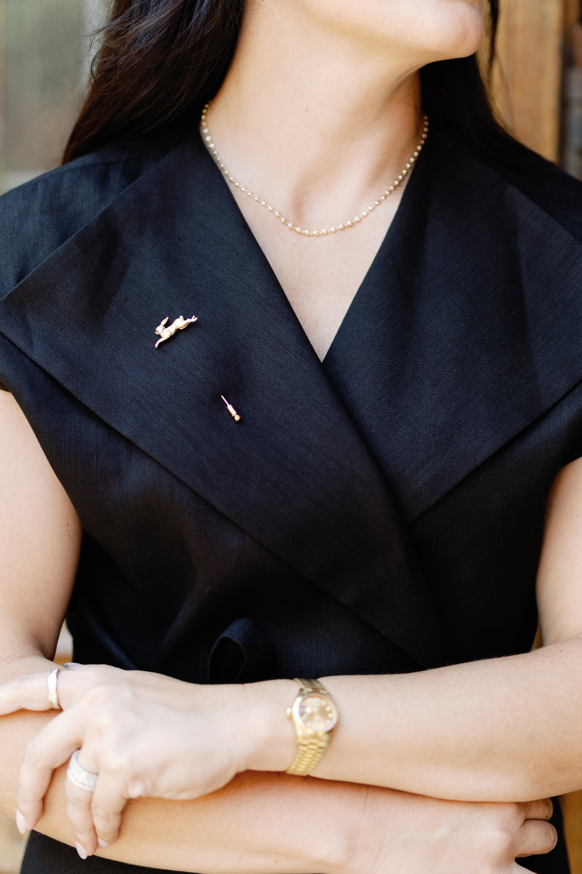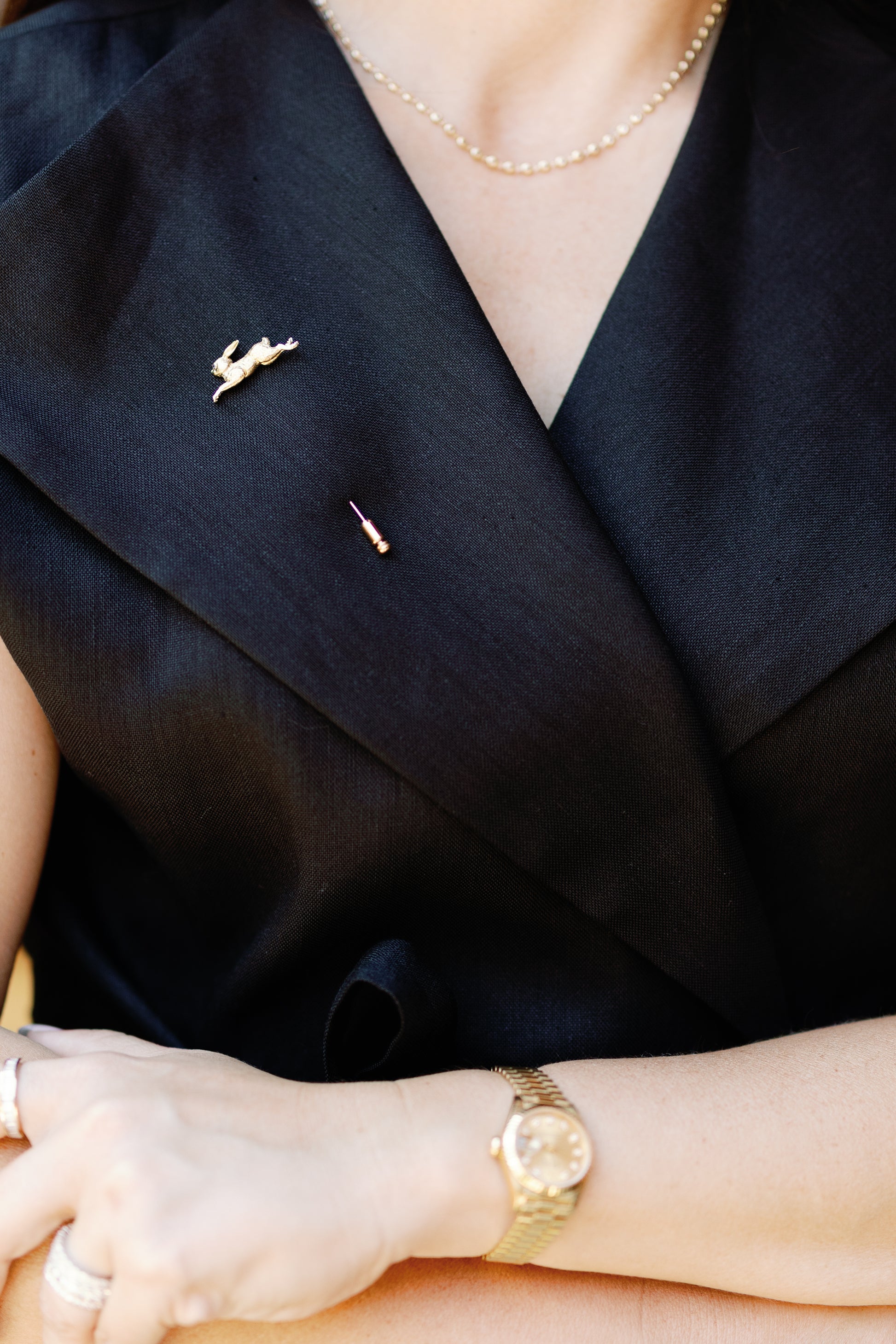 A sleek, 18k gold over 925 silver pin with a playful rabbit design. Perfect for adding charm and sophistication to jackets, hats, or scarves. A timeless, heirloom-worthy accessory for every wardrobe.